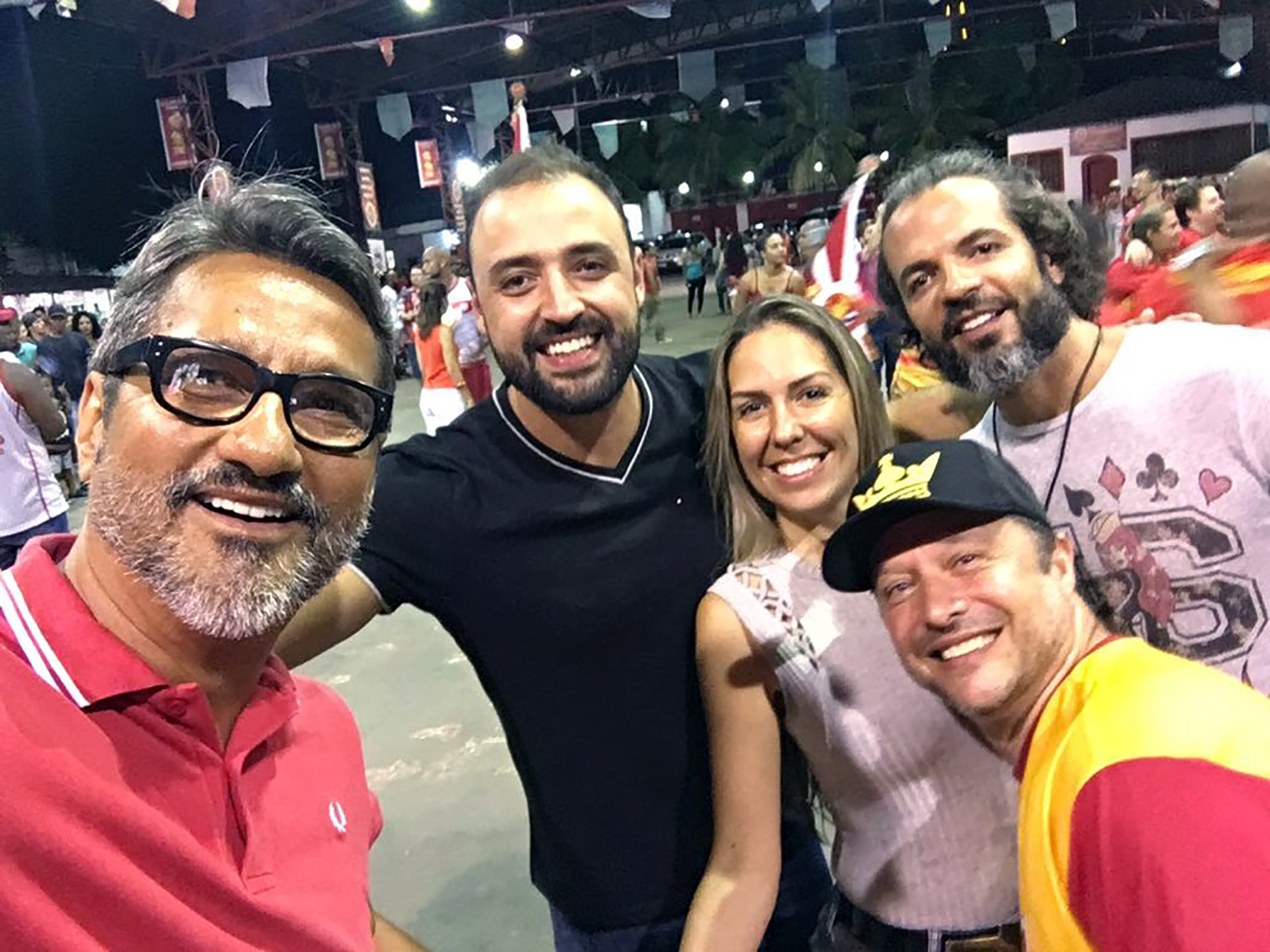 Eu e Marcelo com Robson Guimarães, Vanessa Morett e Maurício Antunes na quadra da Viradouro, que abre suas portas com entrada gratuita toda terça-feira às 19h